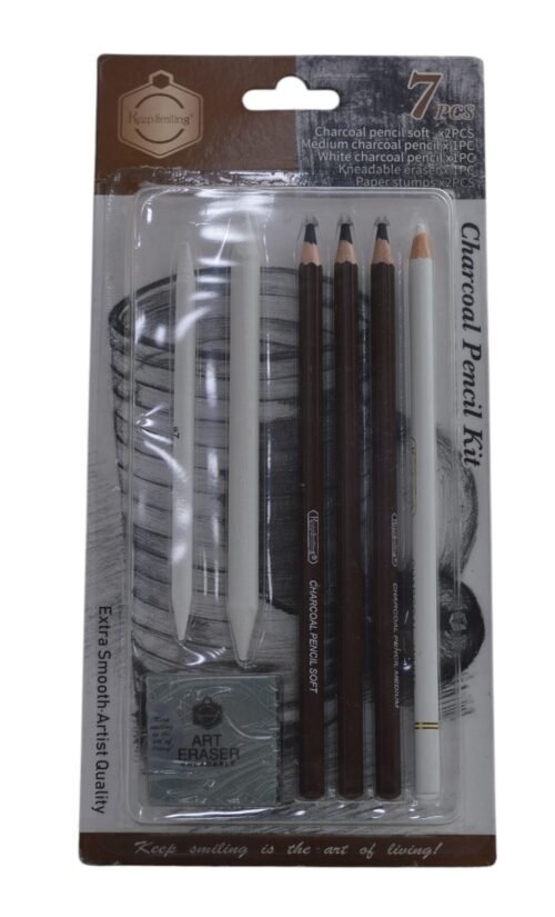 طقم اقلام فحم + محاية + دمج 7 قطع