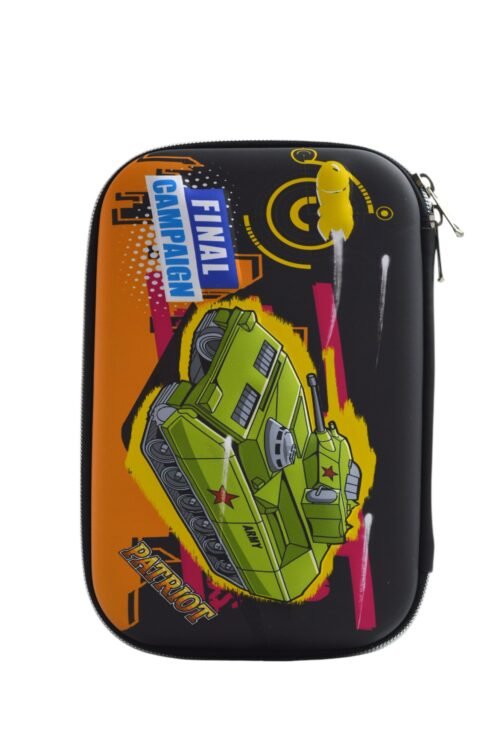 تحتوي علي سوسته داخلية و منظم اقلام (3D)مقلمة دبابة